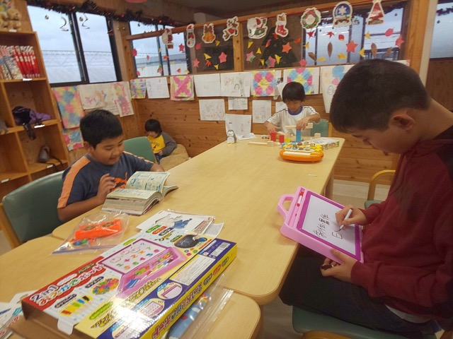 未分類 令和元年11月18日(月) P.M 2019年11月19日 学校組が帰って来るまでいろいろな遊びをして過ごしました😊生活介護にも遊びに行って来ました💞 学校組が帰って来ておやつが終わると宿題がある子は頑張ってやっています❗ 課題が終わるといろいろな遊びをして過ごしています💞 お帰り前には元気に外遊びを楽しみました😊