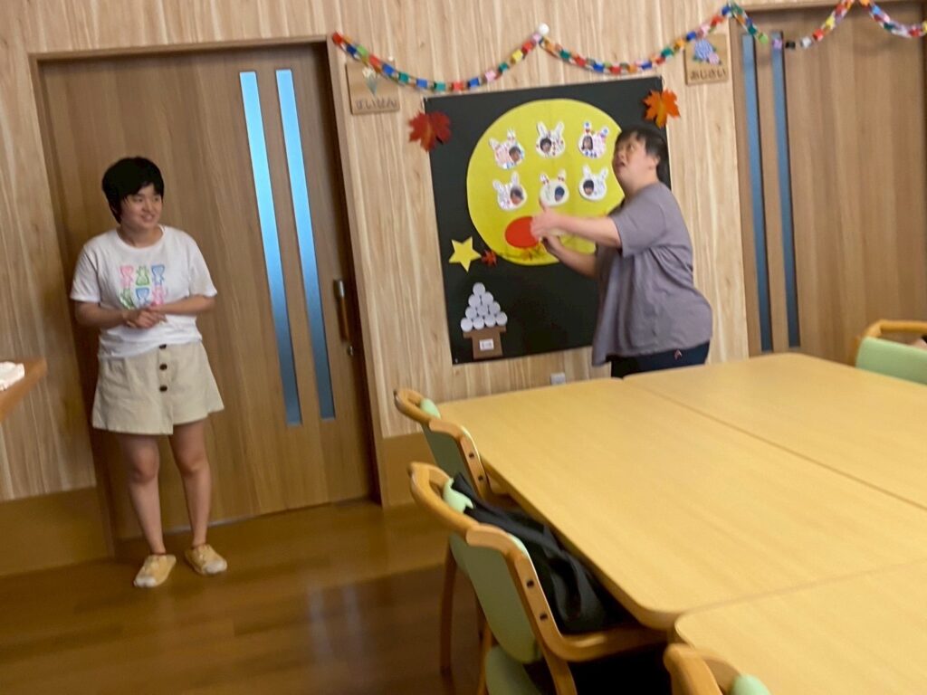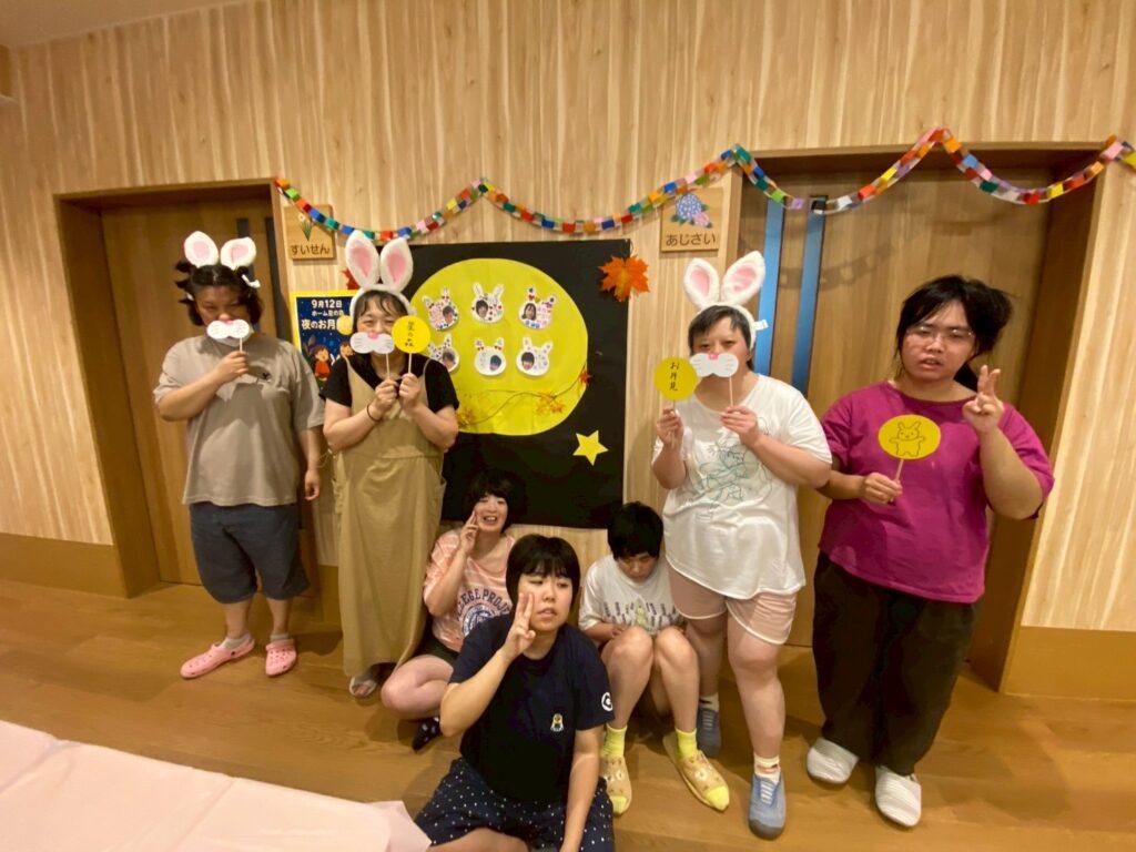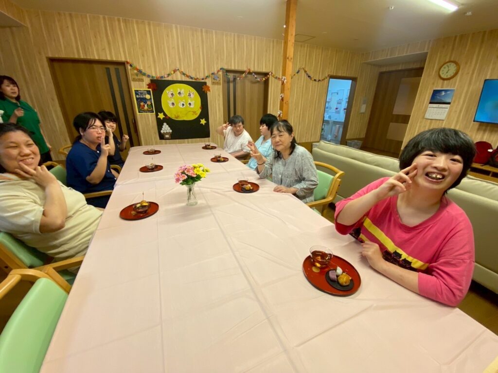 イベント グループホームほのか星の森のお月見 2025年9月23日 今回はグループホームほのか星の森(女性棟)でお月見パーティーをした時の様子を紹介します✨ お月見パーティーの前に、みんなで飾りを準備しました! みんなでオリジナルのデザートを食べました! 風情のあるおやつに、みんな大盛り上がりでした🐇 お月様の前で記念撮影をしました📸 おまけ 休日にリビングの机をくっつけて、卓球をしました🏓