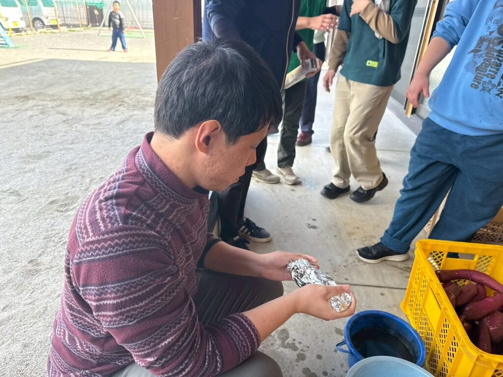 みんなに下準備をしてもらったさつまいもを、一部の利用者さんと職員でじっくりと焼きました🔥