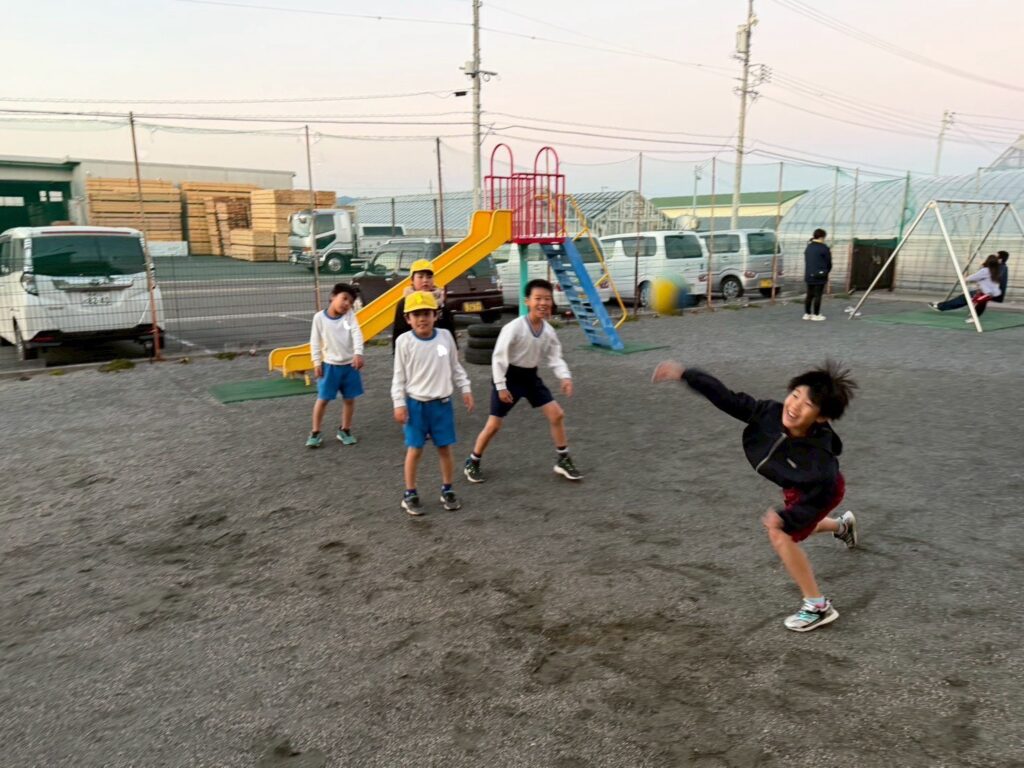 寒くなってきましたが、帰る前には元気に外遊びもしています!