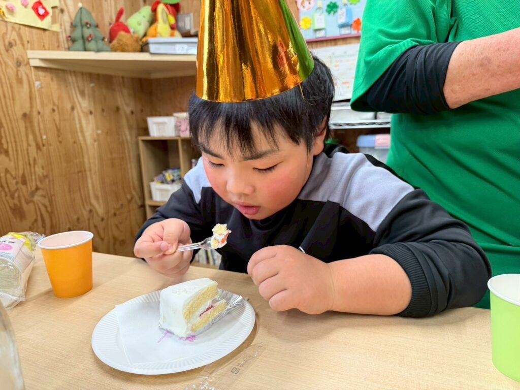 おやつでは、シャンメリーで乾杯してケーキを食べました🍰