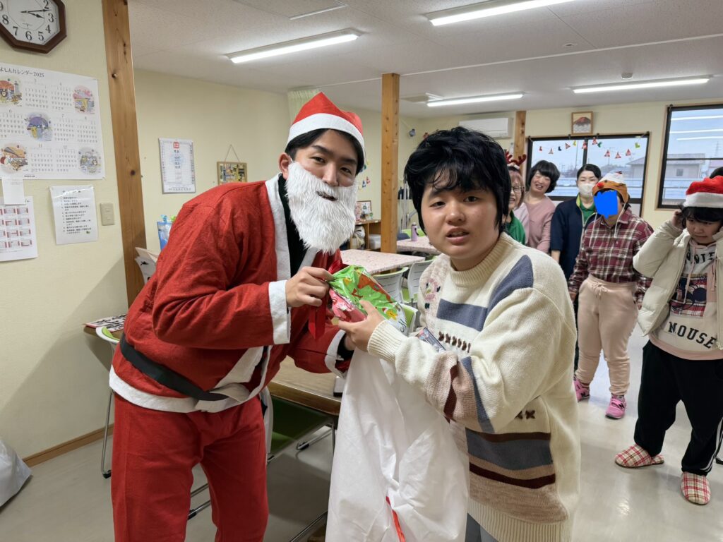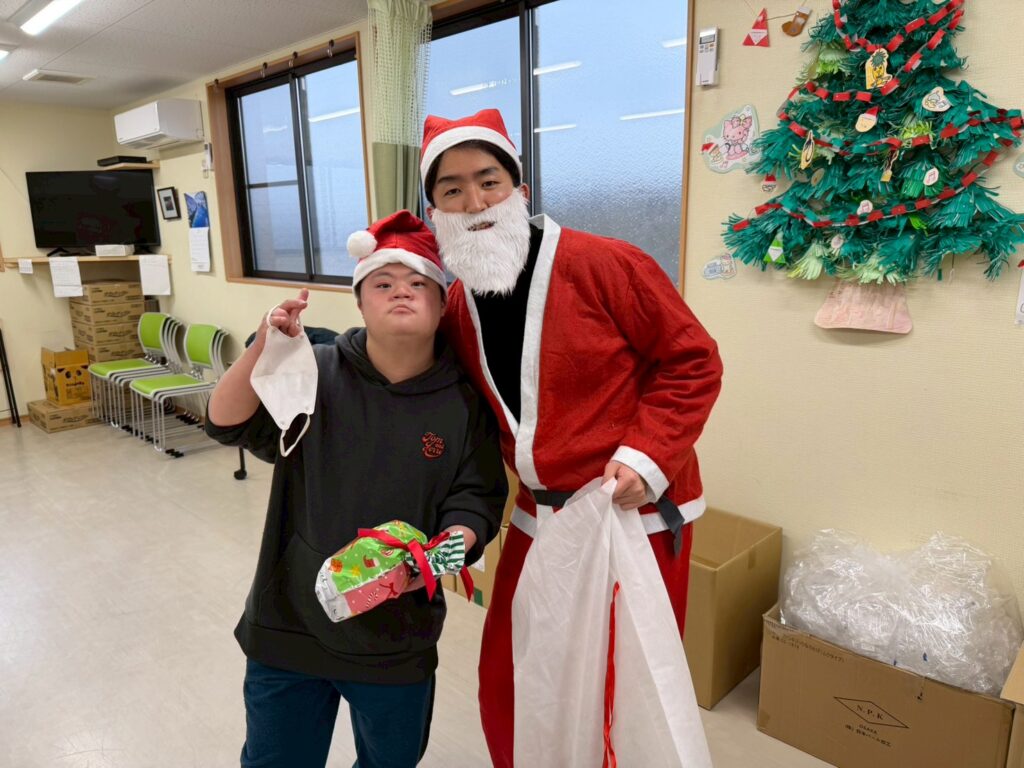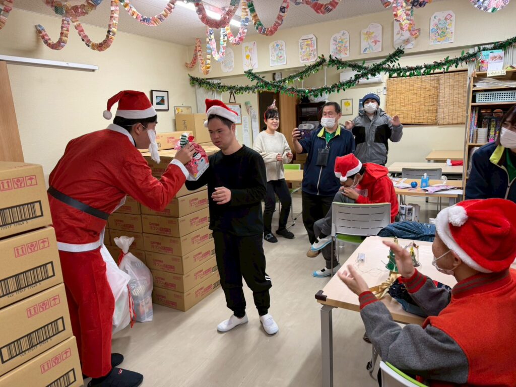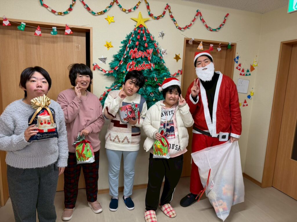 イベント 生活介護事業所ほのかのクリスマス 2026年1月15日 今回は、生活介護事業所ほのかのクリスマスの様子を紹介します📣 クリスマス当日は、サンタさんの帽子をかぶりながら散歩やお仕事を行いました🎅 午後はサンタさんが来て、利用者さんにお菓子のプレゼントを配ってくれました✨ おやつにはケーキを食べました🍰 みんなで楽しいクリスマスを過ごすことができました✨