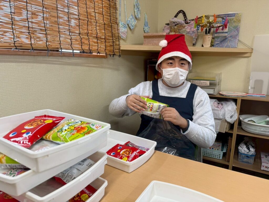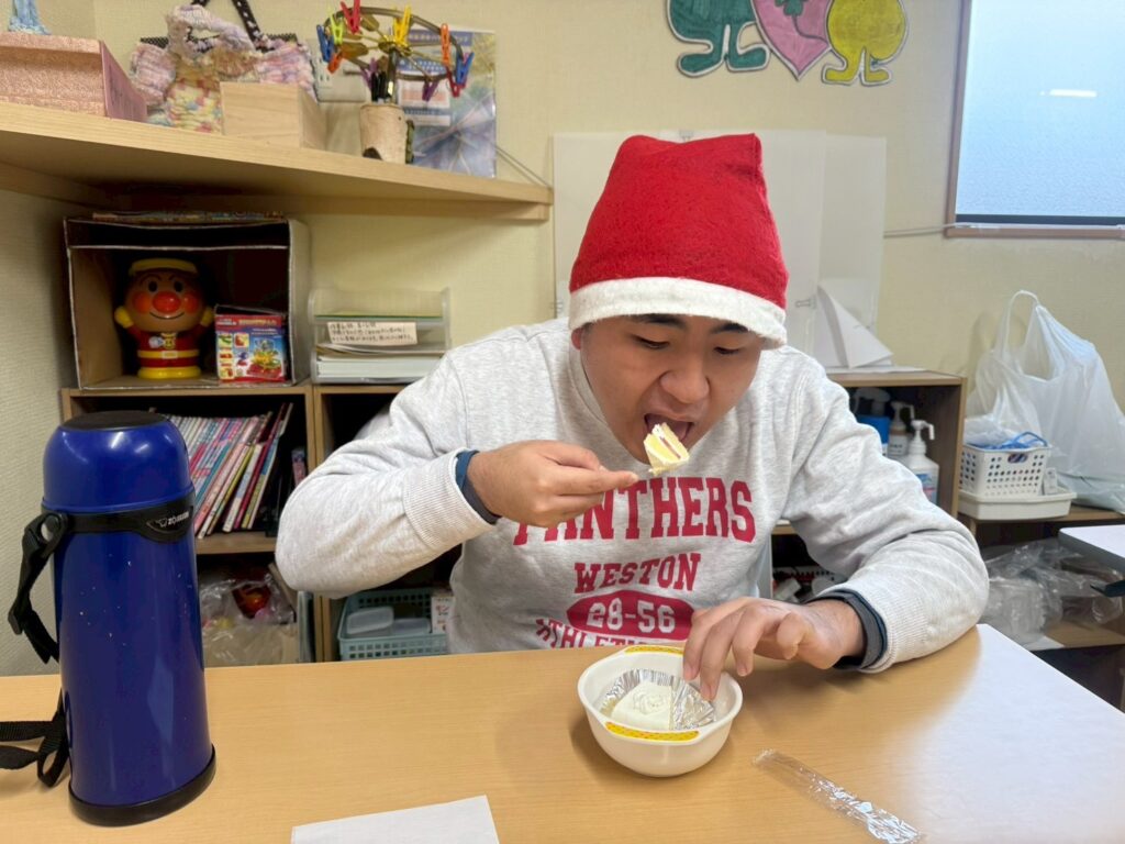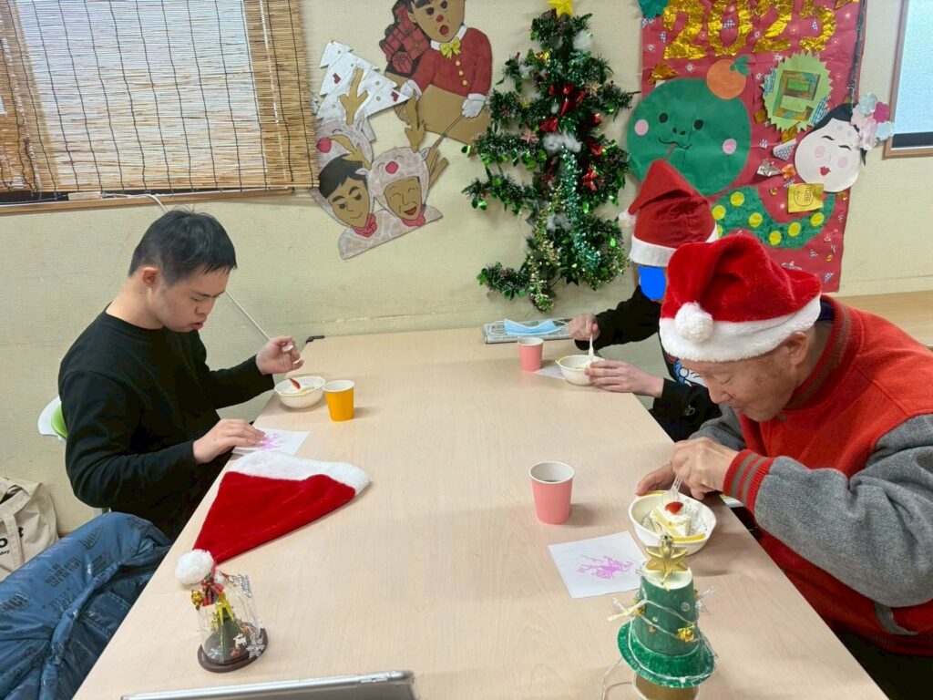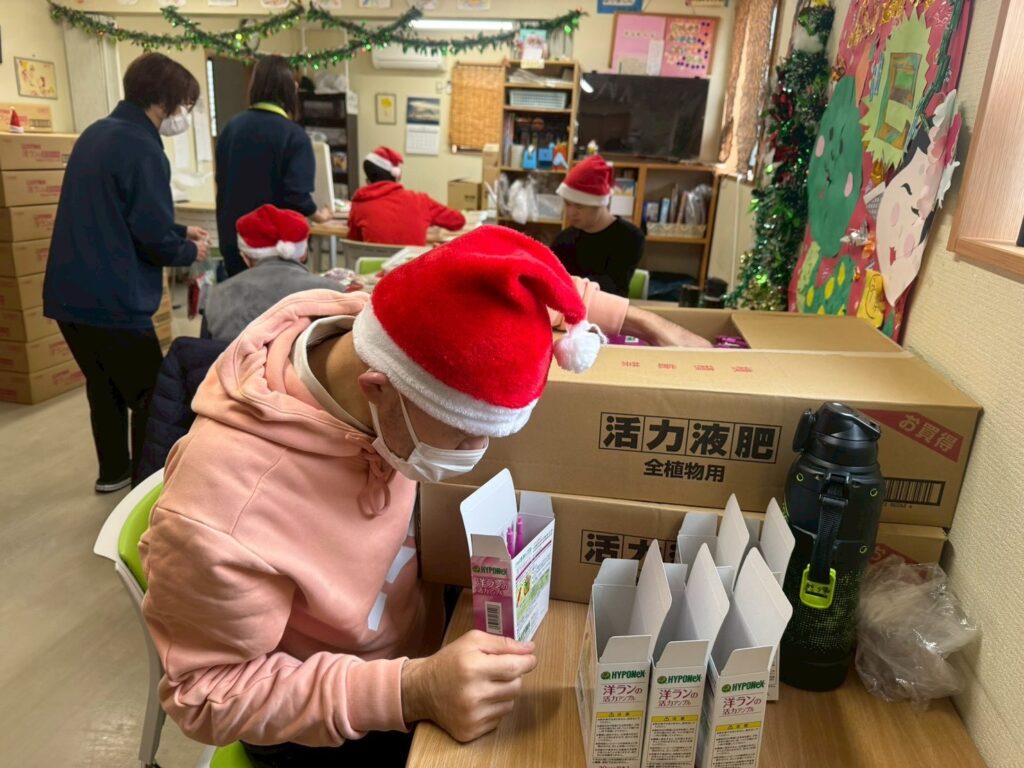 イベント 生活介護事業所ほのかのクリスマス 2026年1月15日 今回は、生活介護事業所ほのかのクリスマスの様子を紹介します📣 クリスマス当日は、サンタさんの帽子をかぶりながら散歩やお仕事を行いました🎅 午後はサンタさんが来て、利用者さんにお菓子のプレゼントを配ってくれました✨ おやつにはケーキを食べました🍰 みんなで楽しいクリスマスを過ごすことができました✨