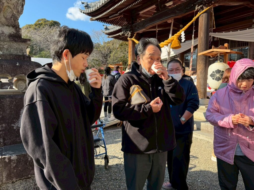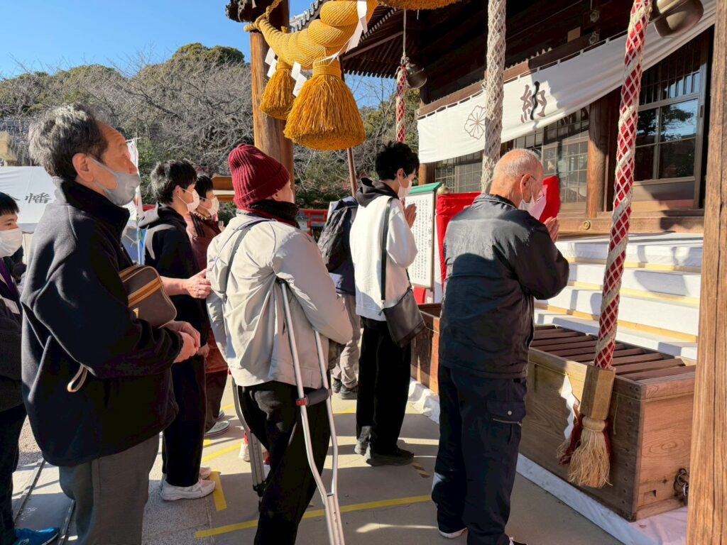 お出かけ ほのかの初詣(グループホーム) 2026年1月20日 今回はグループホームほのかの風の森(男性棟)と星の森(女性棟)の合同初詣の様子を紹介します📣 牟呂八幡宮で新年のお参りをしてきました✨ お参りをした後は、温かい甘酒を飲みました! 来年もみんなで初詣に行きましょうね✨ おまけ 大みそかの日には、近くの神社に除夜の鐘をつきに行きました!